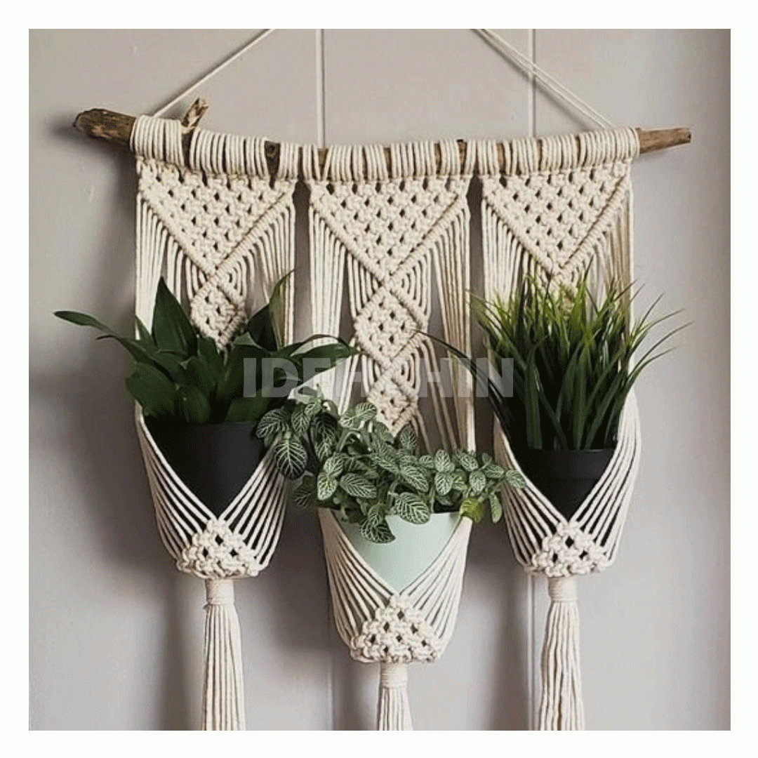 این نوع آویزهای دست ساز که توسط مکرومه بافی ایجاد می شوند، از گذشته رواج داشته اند. آن ها آویزهایی جذاب و متفاوت برای نگهداری گیاهان خانگی شما هستند. استفاده از مجموعه ای از گلدان آویز به این شکل یا یک گلدان تک آویز در حمام، آشپزخانه یا نشیمن، به فضای شما رنگ و تازگی می دهد.